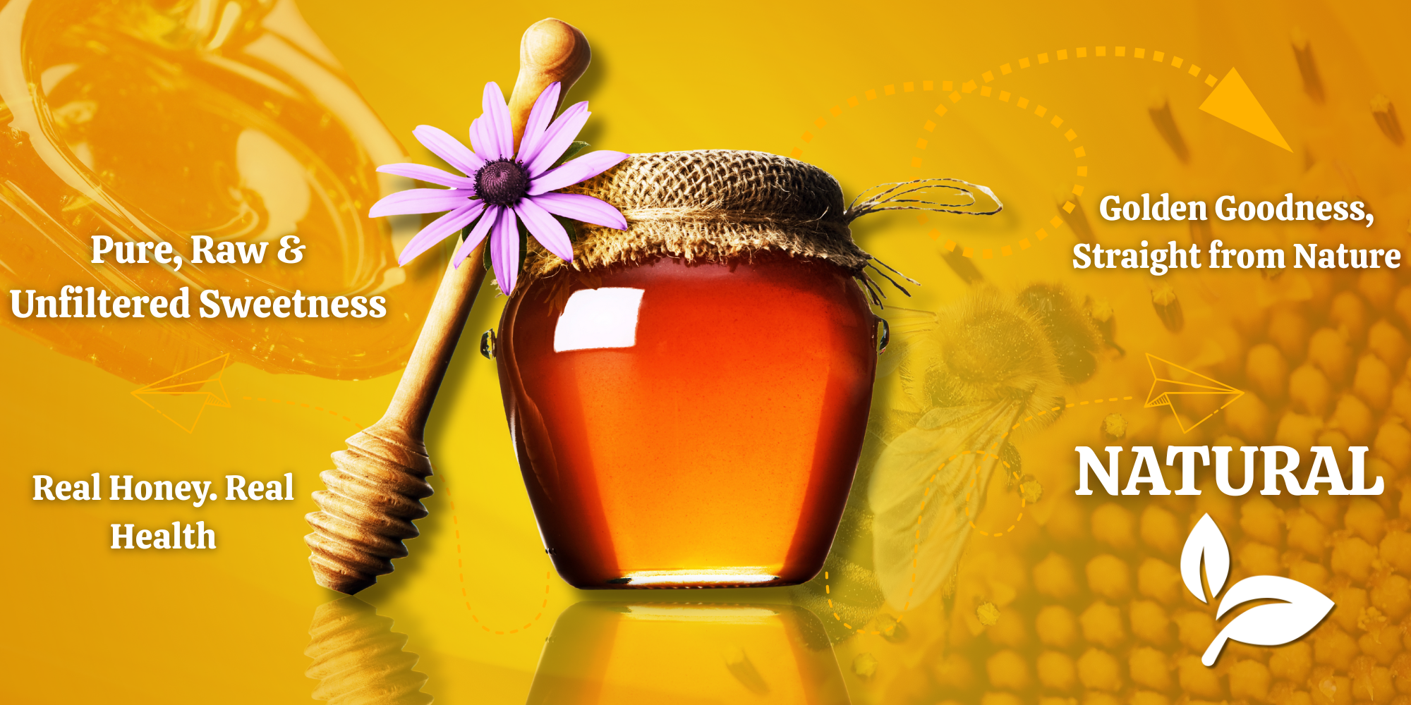 “Pure, raw, and straight from trusted hives — our honey is packed with natural goodness and delivered from hive to home, naturally yours.”